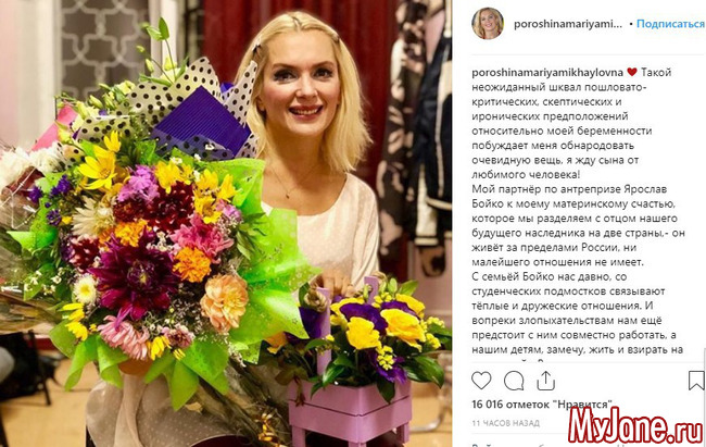 Некоторый уверяют, что Мария беременна от своего партнера по сцене Ярослава Бойко. После того, как слухи перетекли на страницы печатных изданий, Мария обратилась к поклонникам со страниц своего инста - блога. Артистка опубликовала запись, в которой сообщила, что к ее материнскому счастью партнер по сцене никакого отношения не имеет. Мария беременна от любимого мужчины, проживающего зарубежом. И, несмотря на развод с мужем, в ее личной жизни все хорошо.