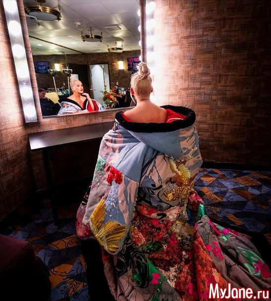 Поэтому гардероб исполнительницы дополнился безразмерным плащом-накидкой в стиле "кимоно". Еще один странный образ: сияющее платье с огромными накладными плечами. В платье Кристина успела поблистать на своем последнем выступлении в Нью-Йорке. А как вам новые образы певицы?
