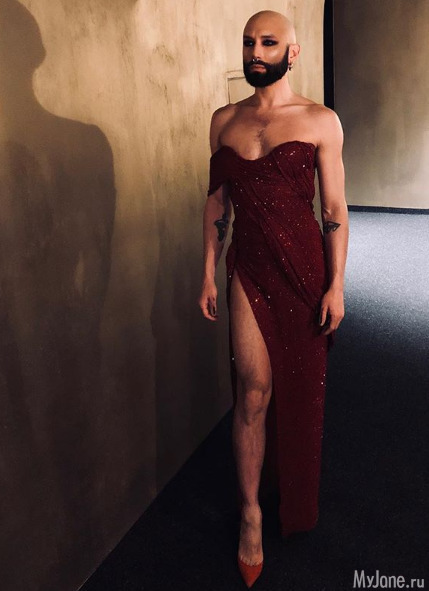Вместо пышных локонов певица ( или певец?) сияет лысиной. Бритая макушка в сочетании с бородой смотрится очень брутально. И можно было бы сказать мужественно, если бы Вурст не носила длинные декольтированные платья с пайетками. Вурст несколько раз заявляла, что планирует начать карьеру под своим настоящим именем, но никак не может перейти от слов к делу.
