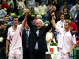 Итак, обладатели Кубка Дэвиса-2006: Марат Сафин, Николай Давыденко, Дмитрий Турсунов, Михаил Южный и капитан команды России Шамиль Тарпищев. Команду поздравили оба президента России - экс-президент Борис Ельцин и действующий глава государства Владимир Путин.