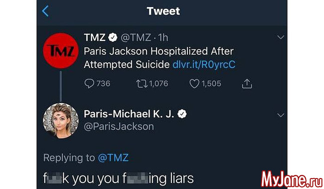 20-летняя Пэрис Джексон совершила попытку самоубийства. В настоящее время она выписана из госпиталя и находится под присмотром родственников.