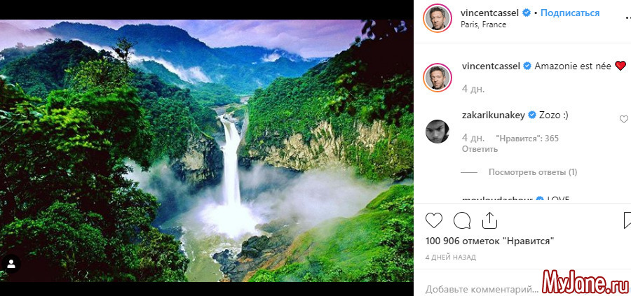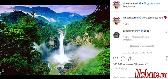 19 апреля появился на свет первенец модели Тины Кунаки - девочка Амазония. Судя по звездному инстаграм, роды прошли быстро. Венсан Кассель стал отцом в третий раз и теперь может полноправно называть себя многодетным отцом. После рождения дочери актер разместил в своем личном блоге фото реки Амазонки с подписью - Амазония родилась.