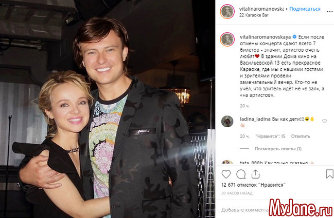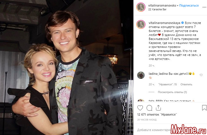 Ранее был отменен концерт Цымбалюк - Романовской и Шаляпина в Храме Христа Спасителя. Виталина очень переживала из-за произошедшего, но радовало то, что на концерт 25 мая в "Дом Кино" на Васильевской, 13 билеты продавались очень активно. Но концертное учреждение получило предписание по вопросу противопожарной безопасности, поэтому до устранения недочетов, площадка будет недоступна. После известия об отмене концерта было сдано всего 7 билетов. В связи с этим Виталина предложила посетить караоке - бар, находящийся в том же помещении , что и Дом Кино. Девушка спела с поклонниками и поделилась позитивным фото в социальной сети.