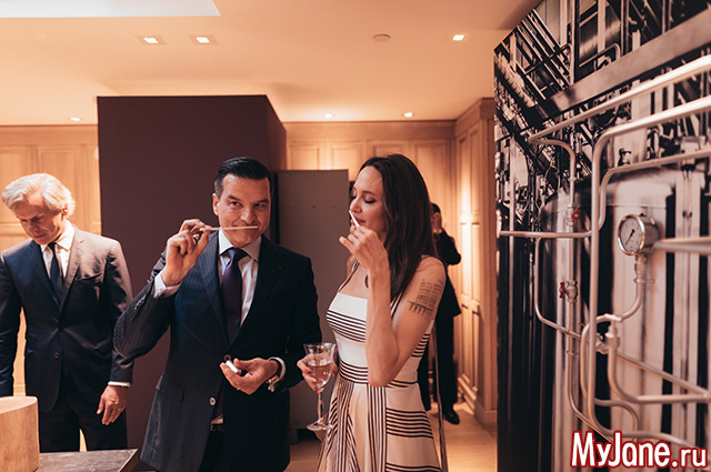 В настоящий момент актриса и ее старшая дочь Вивьен находятся на отдыхе во Франции. Но звезда не сидит без дела, она совмещает приятное с полезным. "Рабочим" визитом можно считать появление Джоли на парфюмерной презентации.