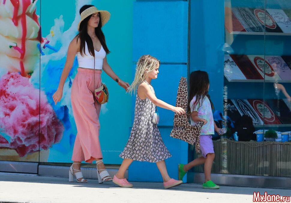 Все три сына Ноа, Бодхи и Джорни были одеты в одежду из отдела "для девочек". Например, для воскресной прогулки старший сын Ноа выбрал сарафан с цветочным принтом и нежно - розовые кеды. Известно, что Меган Фокс придерживается инновационных взглядов на воспитание ребенка. В магазине она дает детям свободу выбора. Одежду сыновья могут выбирать и в мужском и в женском отделе.