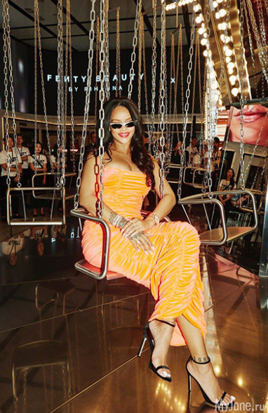 Теперь марка Fenty Beauty представлена и на азиатском рынке. Прилетев в Сеул, Рианна порадовала своих южнокорейских поклонников мастер - классом по визажу, который она провела самолично в самом центре города. А вечером певица появилась на открытии своего бьюти - бутика в магазине Shinsegae Duty Free. Яркая звезда выбрала яркий образ: оранжевое платье от Christopher John Rogers и алую губную помаду.