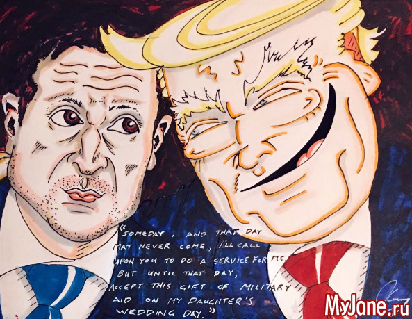 Один из последних твиттов Джим посвятил встрече президента США Дональда Трампа президента Украины Владимира Зеленского. "Однажды, этот день может никогда и не наступить, я попрошу тебя сделать мне одолжение. Но до тех пор прими этот дар в виде военной помощи в день свадьбы моей дочери" , - подписал карикатуру юморист, немного изменив известную цитату из культового кинофильма "Крестный отец".