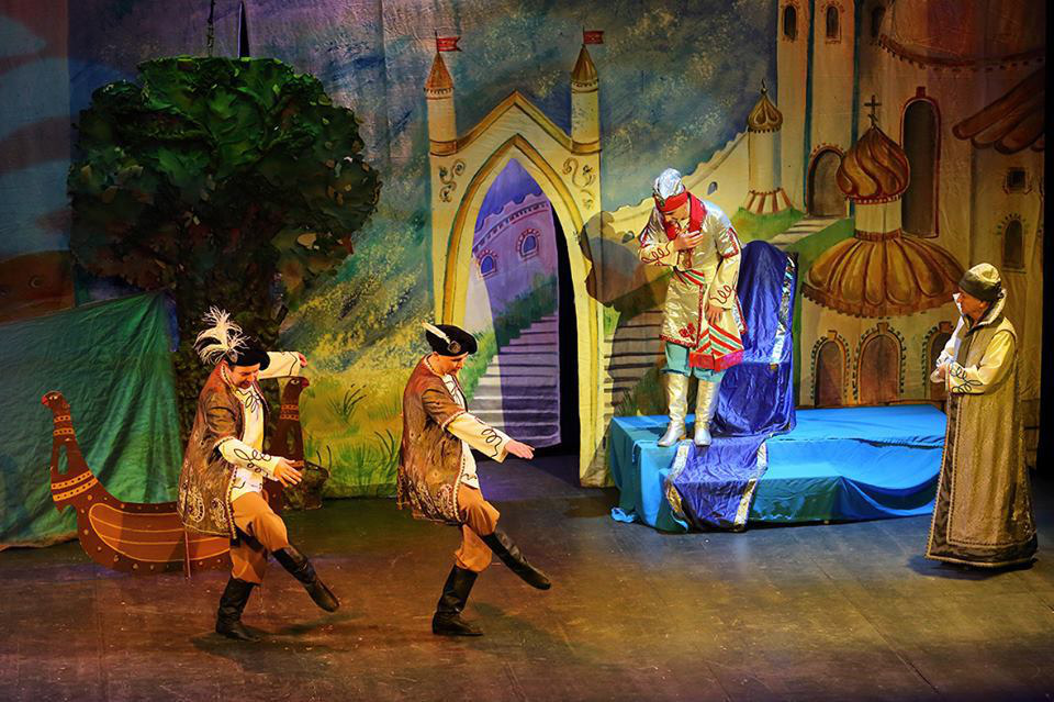 Этот спектакль – прекрасная возможность дать детям почувствовать красоту и образность родной речи, прикоснуться к различным пластам музыкального фольклора и ощутить неповторимое волшебство сказки, рассказанной великим поэтом. Лубок, палехская роспись и другие виды прикладного искусства отражены в сценографии и костюмах спектакля.