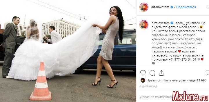 В своем личном блоге Айза разместила фото с церемонии бракосочетания с Гуфом в 2008 году и предложила его приобрести. Девушка утверждает, что платье в шикарном состоянии и вне времени. Шлейф действительно весьма впечатляет. Возможно, какая-нибудь фанатка сможет похвастаться этим приобретением в ближайшее время.