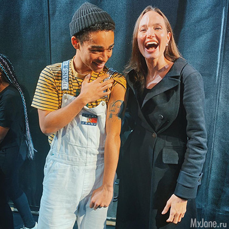 В минувшую субботу актриса посетила постановку известного мюзикла "Дорогой Эван Хэнсен", а после спектакля пообщалась с актерской труппой. Один из актеров Алекс Томас Смитт продемонстрировал Джоли татуировку с ее изображением, набитую на предплечье. Актриса пришла в полный восторг, обняла и расцеловала Алекса, а также оставила под татуировкой свой автограф.