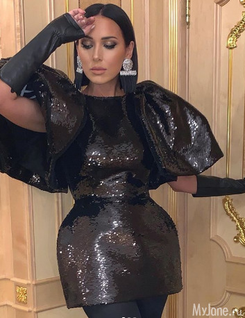 На этот раз артистка смело поэксперементировала со своею внешностью. Черное ультракороткое платье, усыпанное пайетками дополнили митенки и необычные крупные серьги. Фото из гримерки восхитило подписчиков, они окрестили любимицу "космической девушкой", но нашлись и те, кто не преминул съязвить: "Под Топурию косите?". А как вам такой образ певицы?