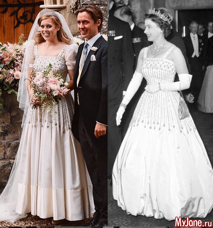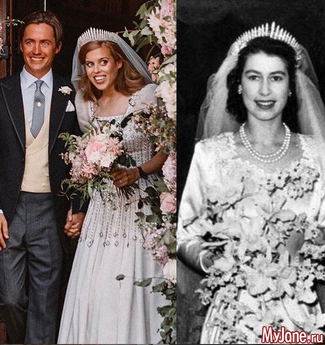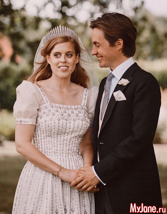 На торжественной церемонии присутствовало всего около 20 гостей, только родные и самые близкие. Из-за пандемии пышную церемонию устроить не удалось, но это компенсировало особое благоволение королевы Елизаветы II. Винтажное пышное платье принцессы было расшито бриллиантами, а голову венчала королевская диадема. Именно в ней Елизавета II сочеталась браком с принцем Филиппом, и именно в этом платье она появлялась на кинопремьере в 1962 году. Бракосочетание Беатрис и Эдорадо прошло в часовне Всех Святых в Винздоре. После молодожены и гости отправились на свадебный обед в резиденции Роял-Лодж.