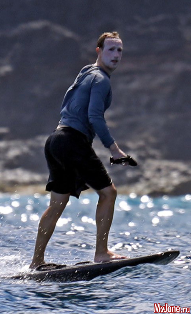 Миллиардер рассекал гавайские волны на электрической доске для серфинга в сопровождении серфингера - профессионала Кая Ленни. И все бы ничего, но обеспокоенный возможностью "обгореть" на солнце, Цукерберг нанес столько слоев солнцезащитного крема, что лицо преворатилось в сплошную белую маску. Фото практически сразу стало вирусным, а пользователи твиттер заполонили сеть коллажами с Цукербергом.