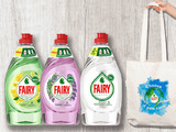1-2 места - подарочный набор (средства для мытья посуды Fairy Pure&Clean (0,9 л), Fairy Pure&Clean Бергамот и имбирь (0,65 л), Fairy Pure&Clean Лаванда и розмарин (0,65 л), эко-сумка с принтом планеты)