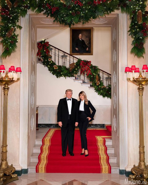 Все-таки Дональд с Меланией решили уйти эффектно – ради праздничного фото они даже облачились в одинаковые наряды! Супруги сфотографировались на красной дорожке в эффектных смокингах!