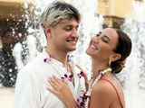 Если раньше эта парочка просто интриговала своих поклонников новостями о скорой свадьбе, а потом с размахом отметила очередную дату своих отношений – семнадцать месяцев, то сегодня влюбленные стали мужем и женой! При этом на церемонии присутствовали только сами Ольга и Давид – специально для них на берегу океана был сооружен свадебный шатер, на праздничном столе красовались огромный двухъярусный торт и шампанское, а местный оркестр сыграл для молодоженов марш Мендельсона, под который они обменялись торжественными клятвами. Ольга облачилась в белое платье с бахромой, а Давид надел бежевые брюки и белую рубашку. И, конечно же, не обошлось без красующихся на их шеях разноцветных венков в гавайском стиле!