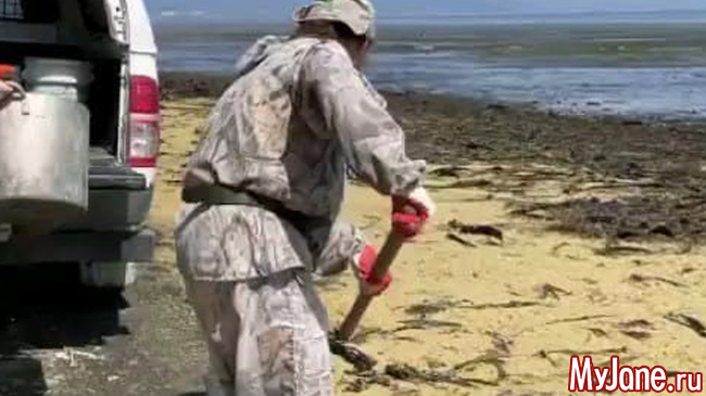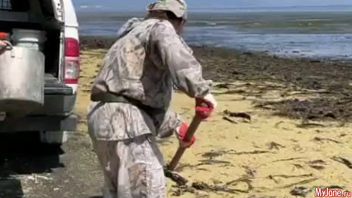 Протяженность сплошной полосы шириной в несколько метров составляет около трех километров, и тянется эта полоса прямо по берегу на восток от Нечаевки! Более того, местами толщина икорного слоя достигает десяти, а иной раз даже пятнадцати сантиметров! Однако назвать данную ситуацию экстраординарной никак нельзя – так же, как и периодические выбросы живой сельди на берег, остающаяся на берегу икра является совершенно обыкновенным и нормальным элементом жизненного цикла многочисленной сахалино-хоккайдской сельди. А чтобы дары моря не пропали зря, местные жители уже потихоньку вывозят икру на свои дачные участки, где достаточно успешно используют ее в качестве удобрения!