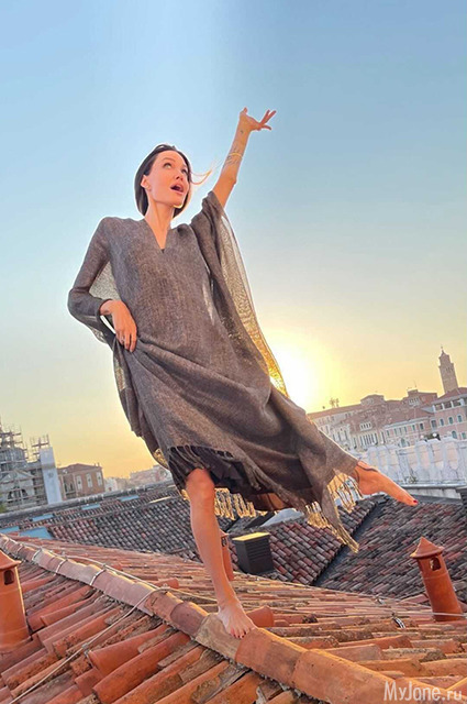 Отдыхающая в Венеции Анджелина Джоли устроила фотосессию прямо на крыше
