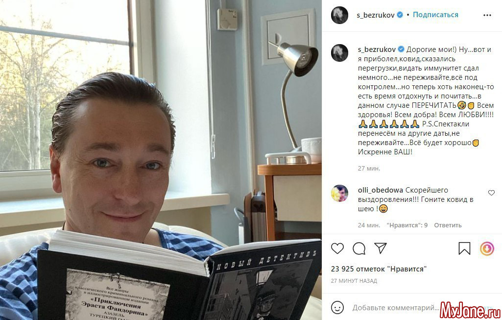 При этом актер попросил своих поклонников не переживать за него, так как недуг протекает у него в легкой форме, и он просто не стал лечиться дома из-за боязни заразить свою жену и детей. И перейти на удаленку из-за отсутствия отдельной комнаты у него тоже не было возможности, да и при наличии в доме маленьких детей полноценная работа вряд ли была бы возможна. Именно поэтому Сергей и решил пока что побыть под наблюдением медиков, а заодно отдохнуть, отоспаться и вдоволь почитать! Кстати, он считает, что заболел исключительно потому, что не успел пройти ревакцинацию! Что же касается его спектаклей, то они будут перенесены на другие даты!