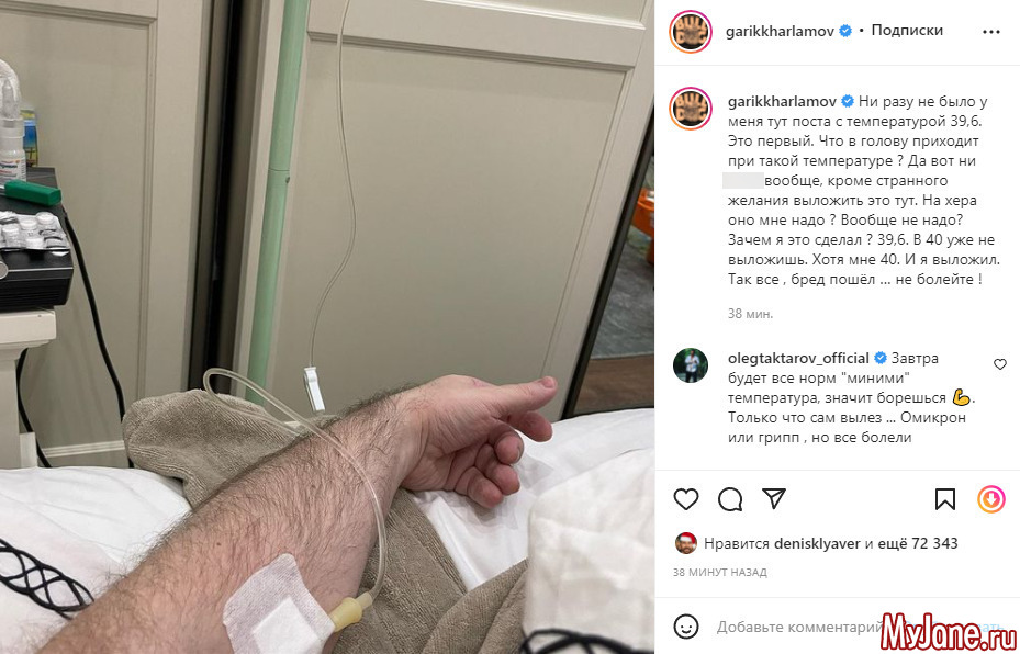 А вот чем именно заболел комик, он пока что не пояснил – Гарик отметил лишь то, что в настоящее время он чувствует себя очень-очень плохо. И его возлюбленная, актриса Катерина Ковальчук, пока что находится не рядом с ним, так что не исключено, что артиста сразил и коронавирус. А коллеги по звездному цеху, равно как и многочисленные подписчики шоумена, сейчас только и делают, что желают ему скорейшего восстановления и возвращения домой!