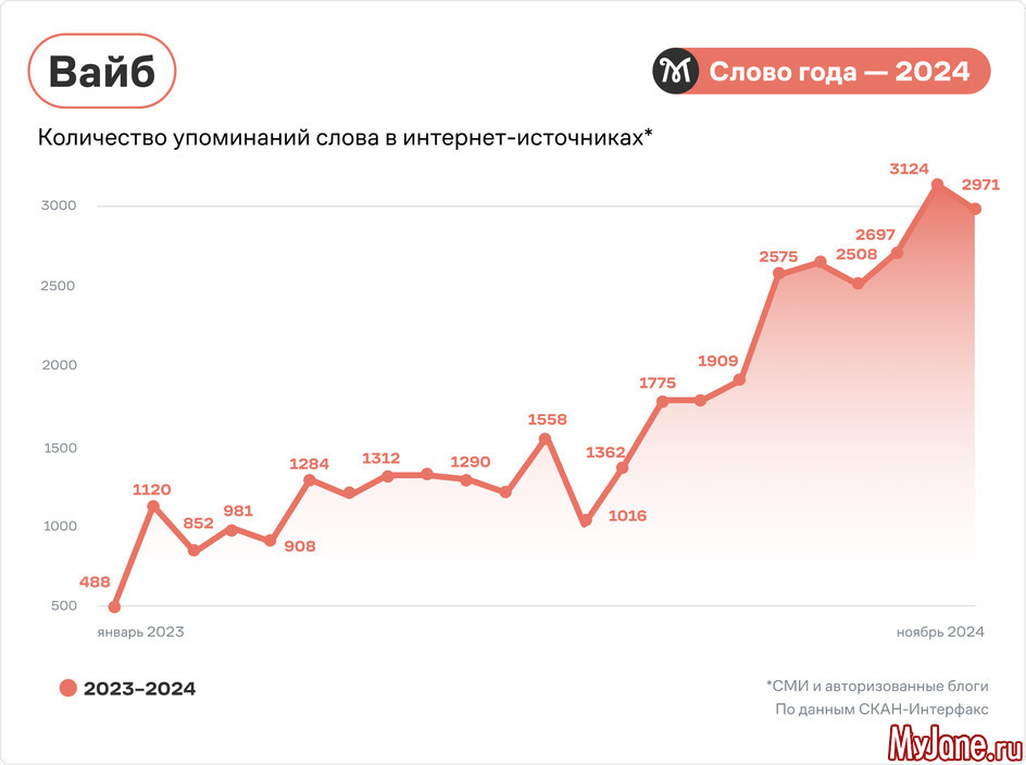 По версии портала «Грамота.ру» главным словом 2024 года стало слово «вайб»