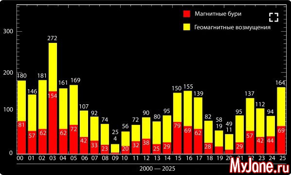 2025 год – редкий пример затяжной геомагнитной нестабильности, ведь на протяжении всего года даже без экстремальных вспышек магнитные бури следовали буквально одна за другой!