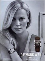 На днях в этом круговороте лиц рекламных кампаний запуталась актриса Шарлиз Терон. 1 октября 2005 года швейцарская часовая компания Raymond Weil заключила с Шарлиз контракт, по которому Терон до конца 2006 года обязана была появляться на любых светских событиях лишь в часах этой марки.