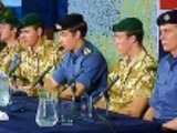 На фото: запутавшиеся в своей лжи бывшие пленники на пресс-конференции.