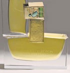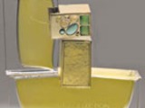 Стеклянный флакон увенчан крышечкой с инкрустированными камнями, вдохновленной брошью Джозефа Хоффманна (Josef Hoffmann). Были использованы авантюрин, желтый и зеленый нефрит и цитрин. Каждая крышечка уникальна, как уникален каждый камень.