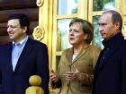 На фото: Жозе Мануэл Баррозу, Ангела Меркель и Владимир Путин на открытии саммита Россия-ЕС.