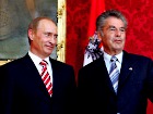 Сегодня президенты России и Австрии Владимир Путин и Хайнц Фишер проводили переговоры. Их первая беседа проходила с глазу на глаз. Лидеры предпочли пообщаться за чашкой чая. Позднее к президентам присоединились члены делегаций двух стран. Сейчас, после переговоров в расширенном составе, Путин и Фишер отвечают на вопросы журналистов на совместной пресс-конференции.