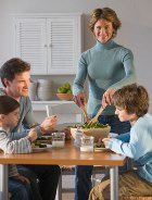 Вот что говорит об этом психолог Пэт Спанджин: «Когда члены семьи встречаются за совместным обедом или ужином, - рассказывает специалист, они должны с максимальной пользой использовать это время. Беседы за столом о семейных делах - ключ к единению». По ее словам, в приеме пищи существует три одинаково важных этапа. Так, на первом этапе, когда еда уже приготовлена и семейство усаживается за стол, устанавливается психологический контакт между членами семьи. На втором этапе, во время еды, люди могут вести неторопливую беседу о насущных делах. На заключительном этапе, по словам доктора Пэт Спанджин, происходит духовное единение членов семьи во время так называемого «сладкого разговора», когда прием пищи окончен, но семья еще не вышла из-за стола.