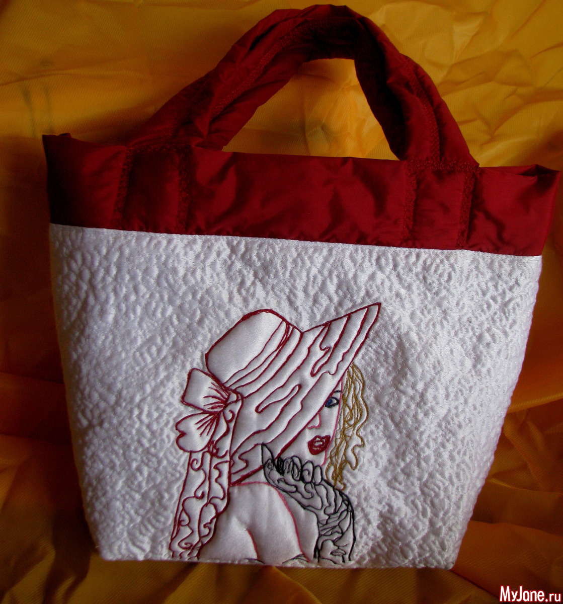 текстильная сумка, свободно - ходовая стежка, застежка молния, два кармана внутри, подкладка декоративная стежка
