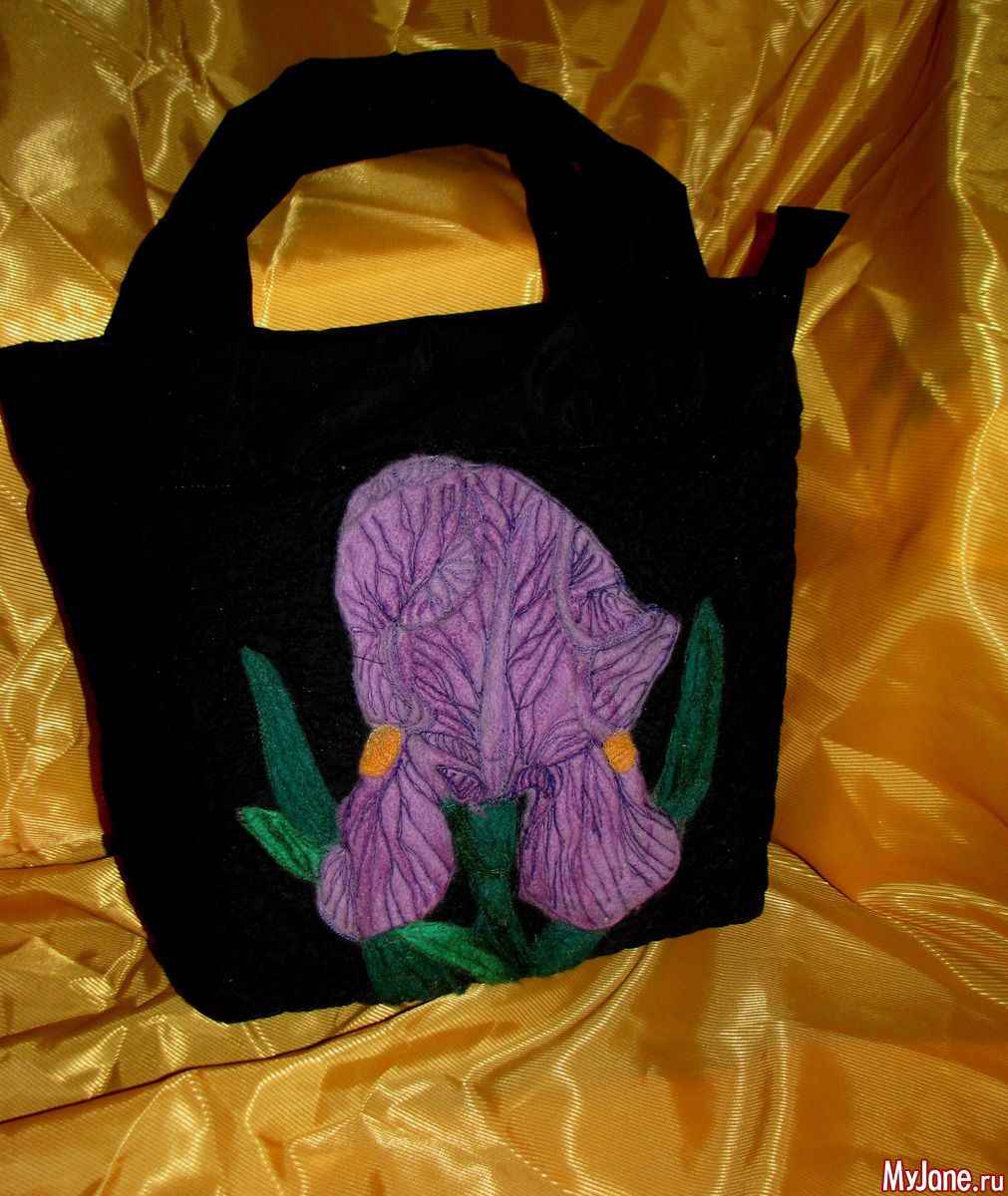 текстильная сумка, основа плащевка, аппликация сделана на иглопробивной машинке из шерсти для валяния, подкладка стежка, два накладных кармана - вышиты декоративными строчками,