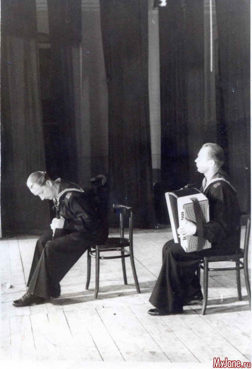 «1952,papa michman Nikolai Viazmin na balalaike and Boris»
