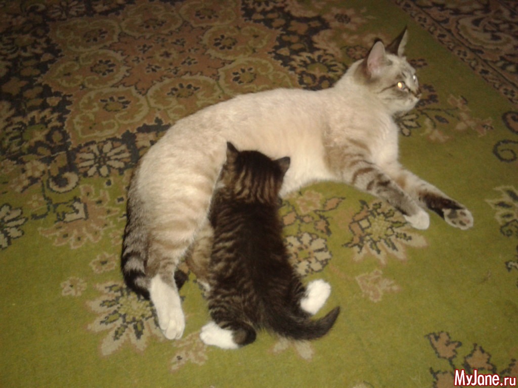 А почему котёночек только один? Обычно у кошки несколько котят