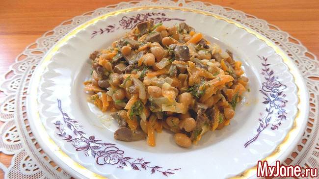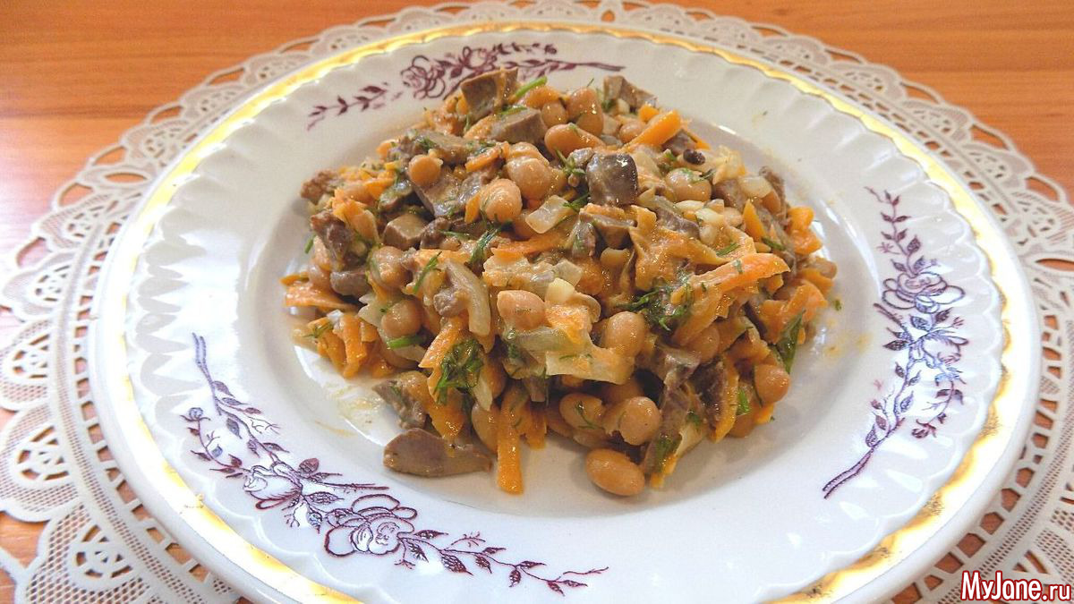 Салат с куриной печенью и морковью с луком. Видео рецепт