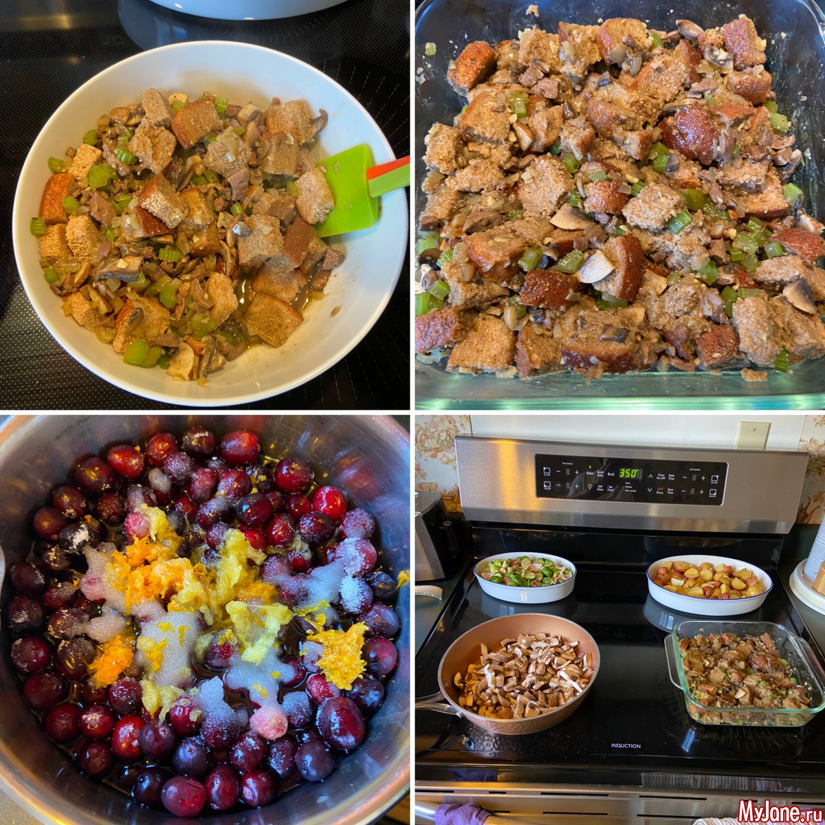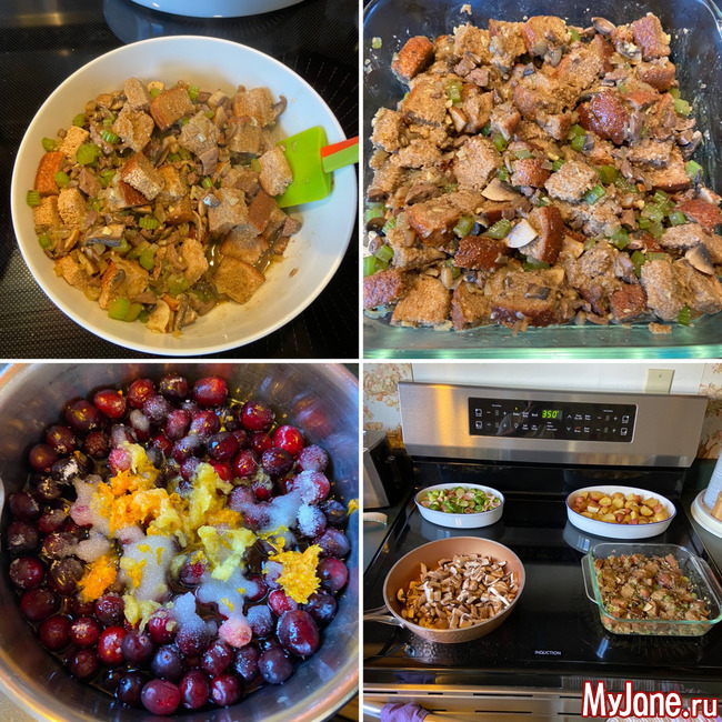 Стафинг итог перед духовкой, клюквенный соус и всё вместе в ожидании
