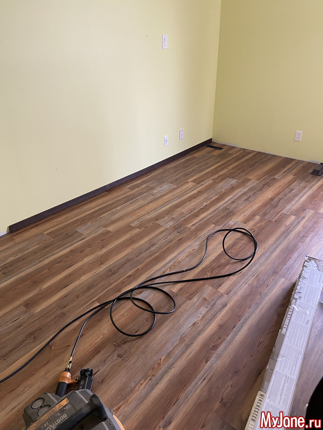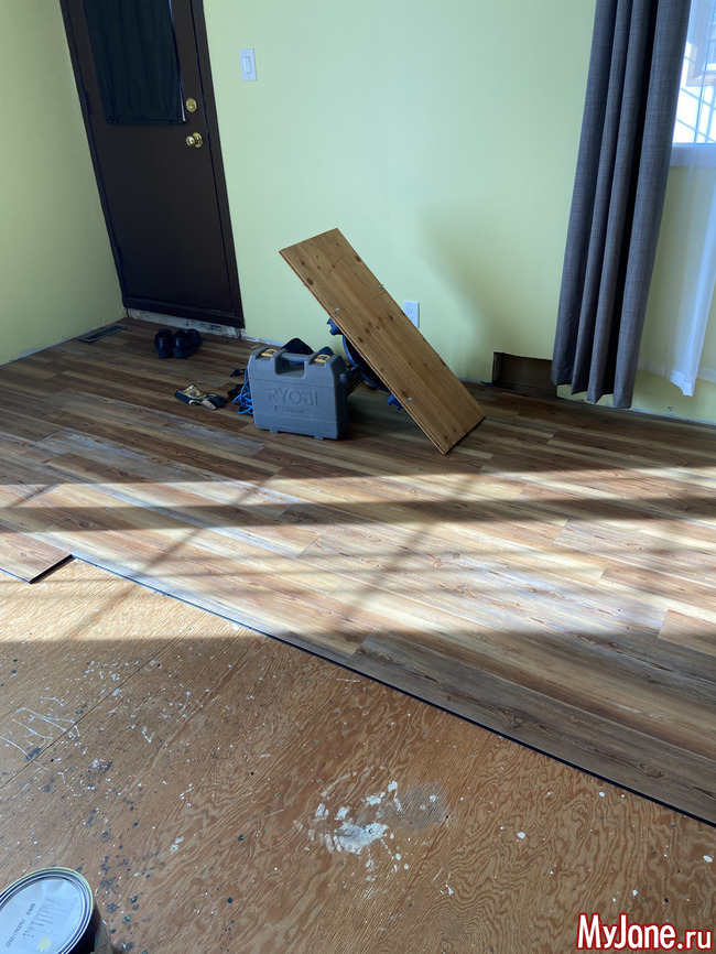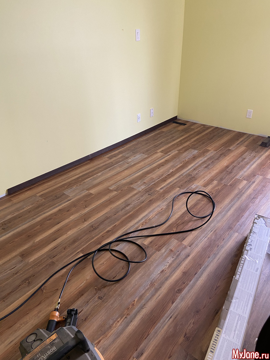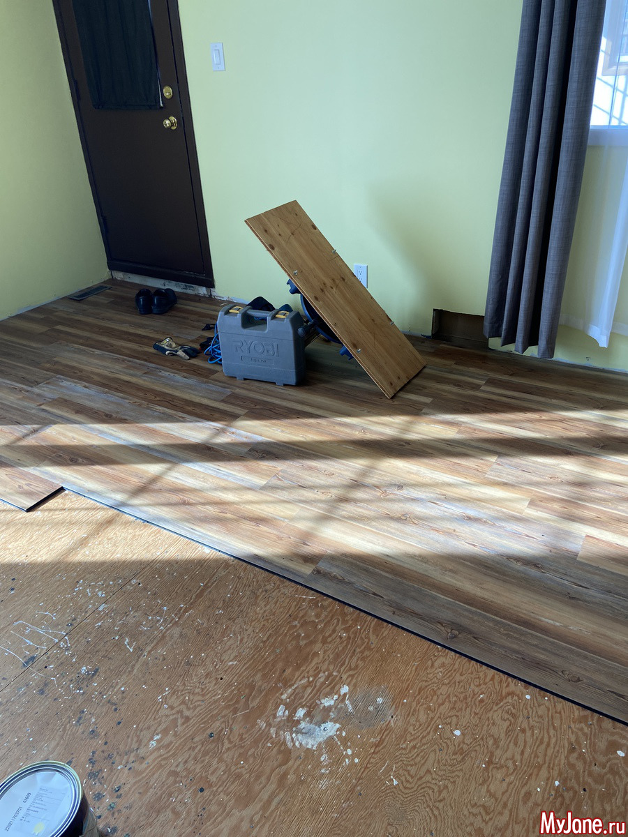 Наши ремонтные будни. Ложили пол в спальне. Муж поударничал и выложил в 2 дня. Обналичку доделаем позже