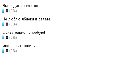 У салата получается слегка кисло-сладкий вкус, с ароматами яблока и огурчика. Вообщем, может кому захочется поэкспериментировать - обязательного попробуйте.