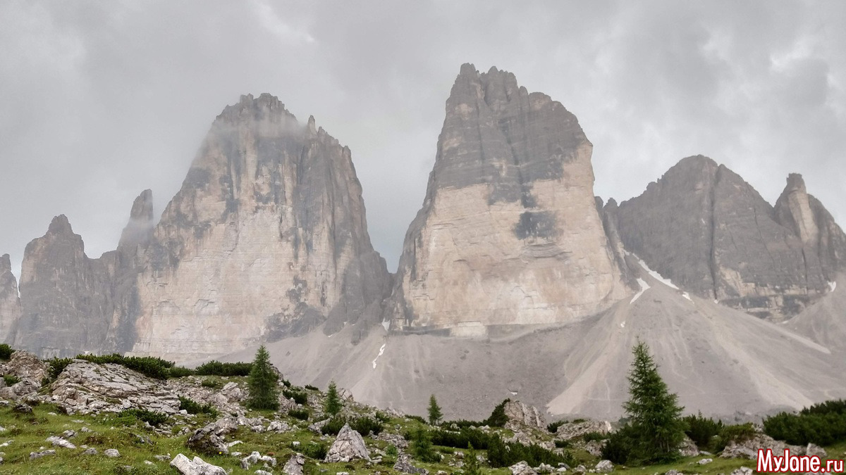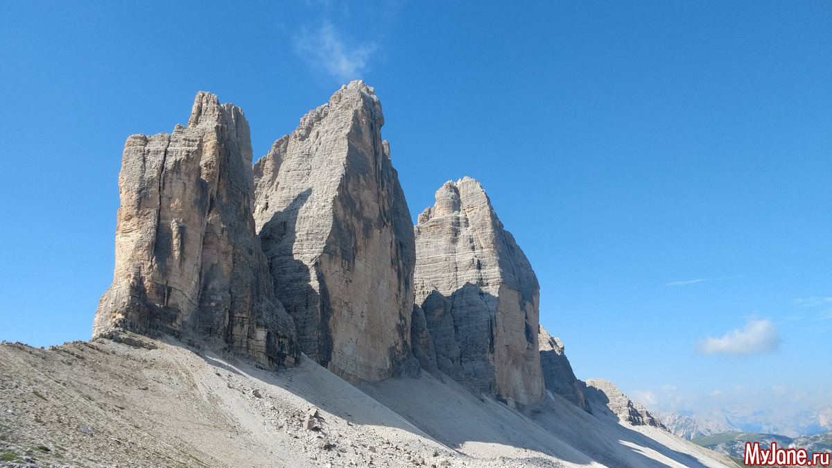 Этот массив гор называется Tre Cime. Он - визитная карточка Доломитов. Только с другого ракурса. Мы обошли эти горы вокруг.