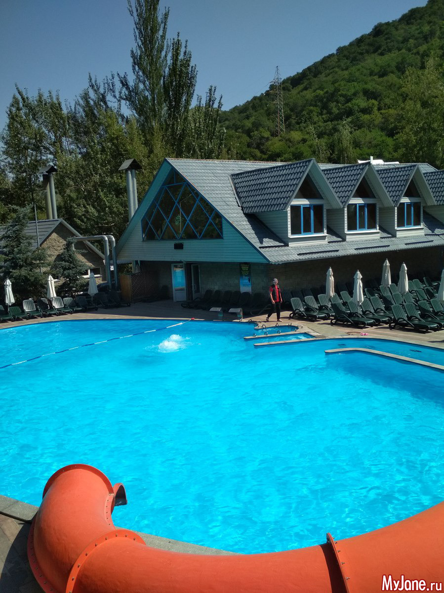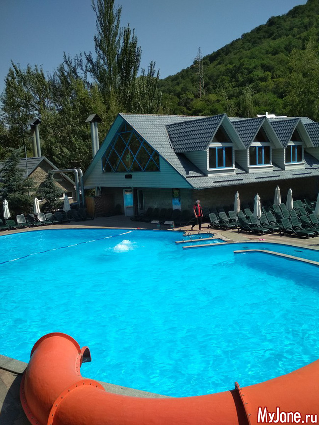Раз в неделю ездим в Тау СПА, это комплекс в горах. Приноровились приезжать к открытию, и почти час плаваем вдвоем (!) вот в этом бассейне: