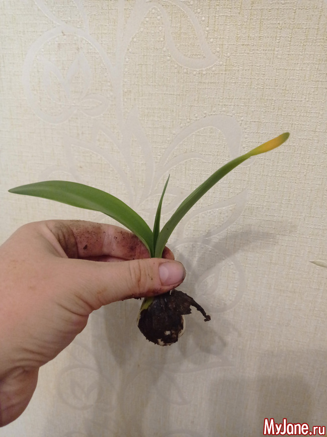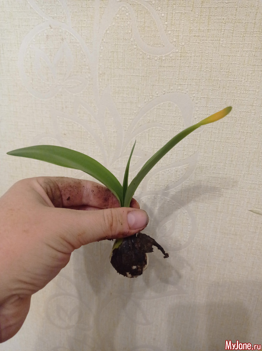 Всем привет! Лето выдалось у меня насыщенным, много чего в нем было, особенно - поликлиник, ну да ладно. Главное - цветы свои забросила не на совсем, никого не уморила за лето и то хорошо. Летняя жарища не оставила шансов заливам, а вот к середине сентября стало понятно, что пора полив контролировать. 11 сентября первой ласточкой стал внезапно захандривший малыш-клоун (Clоwn). У него перестали отрастать листья, к тому же их кончики активно зажелтели. Потянула за макушку - и луковка без корней оказалась у меня в руке.