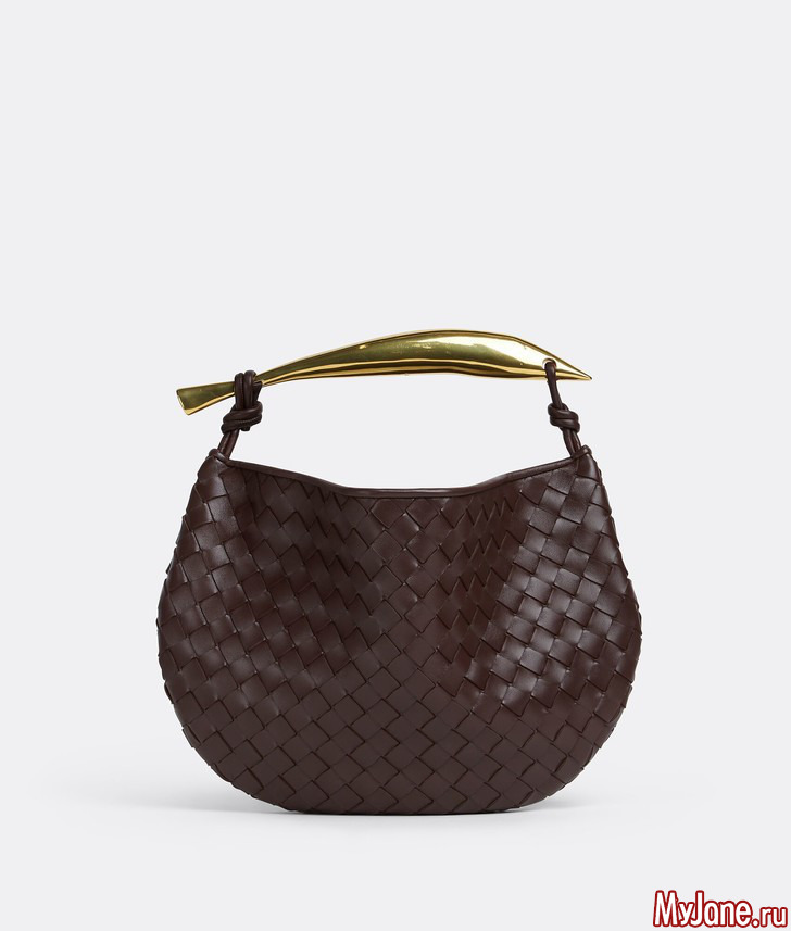 Сумка из первой коллекции Матье Блази для Bottega Veneta еще не примелькалась и не наскучила — в отличие от белой майки и джинсов с показа. Аксессуар, сплетенный вручную в технике intrecciato, цепляет внимание благодаря металлической ручке в форме сардины — отсюда и «рыбное» название.