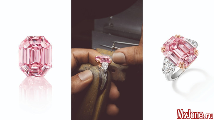 В 2018 году этот внушительный список пополнил розовый бриллиант, произведший сенсацию в ювелирном мире. Его появление было «практически неслыханным» — все из-за невероятного размера и редкого цветового градиента. Harry Winston приобрели камень весом 18,96 карата из коллекции семьи Оппенгеймеров на аукционе Christie’s в Женеве за $50 млн. На стоимость повлиял не только вес камня, но и исключительная яркость, обычно свойственная экземплярам меньше одного карата.
