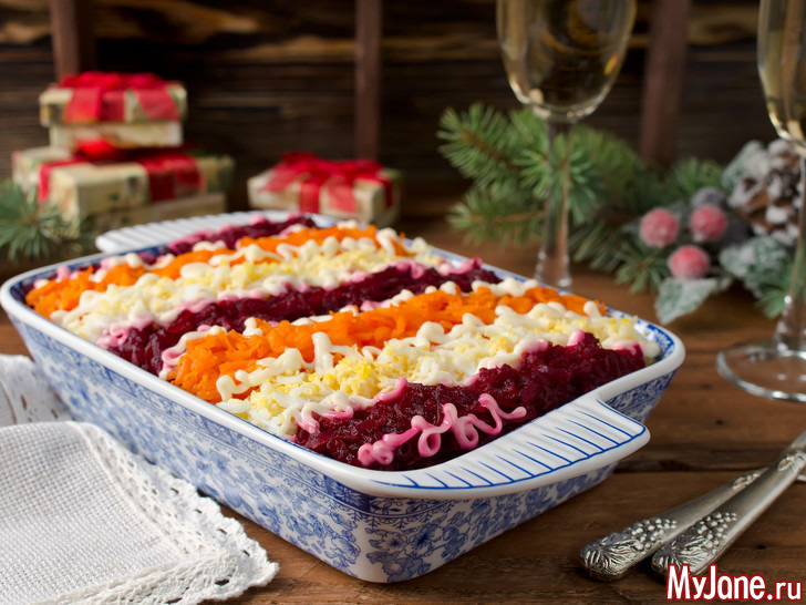 Популярная закуска, которая берет начало еще в дореволюционное время, однако тогда винегретом называли самые разные блюда. А в СССР этот салат с консервированным горошком или фасолью (еще одним популярным продуктом в советский период) стал ассоциироваться именно с праздниками.