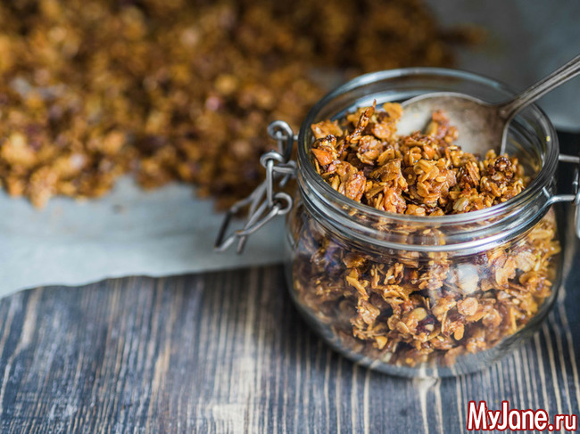 Несмотря на то, что готовые мюсли довольно питательны, как правило, они содержат очень много сахара и калорий (то же касается и мюсли-батончиков). Вместо того, чтобы покупать гранолу в магазине, лучше попробовать приготовить ее дома, добавив в качестве подсластителей сухофрукты и мед.