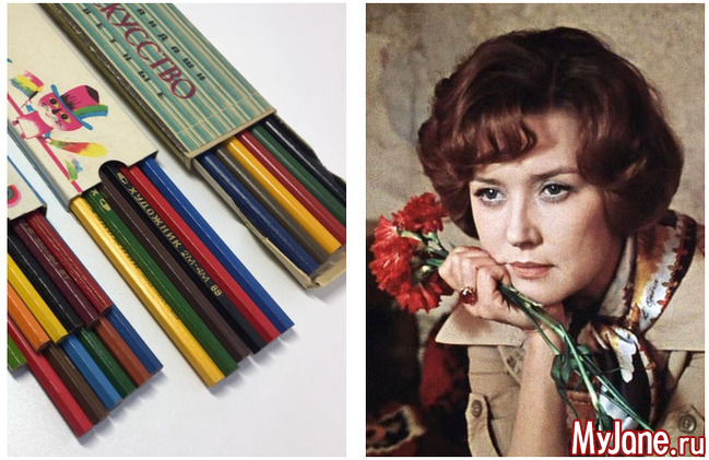 В СССР тени не производились, поэтому до появления импортной косметики любимым бьюти-магазином любой девушки был художественный отдел. Женщины проявляли максимум фантазии и научились делать макияж с помощью мелков и карандашей для рисования. Последние были альтернативой современным карандашам для губ, особой популярностью пользовался красный из набора «Юный художник». А из мелков для рисования делали тени для глаз. Рецепт простой: стереть мел в порошок и добавить каплю воды. В зависимости от оттенка мелки могли служить и румянами. Пользоваться такими методами не рекомендуем — составы карандашей и мелков не предназначены для нанесения на кожу.