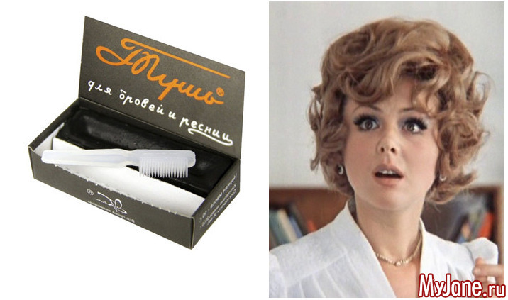 Тушь в советские времена была одна, и она совсем не похожа на современную. Она продавалась в плоской небольшой коробочке с щеткой, напоминающей зубную. Сама краситель имела твердую консистенцию, поэтому перед применением ее необходимо было смочить. Удивительно, но вместо добавления капли воды девушки предпочитали плюнуть в коробку. Отсюда и название.