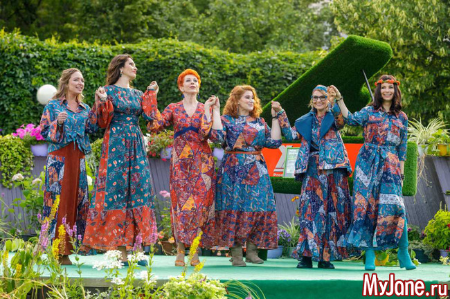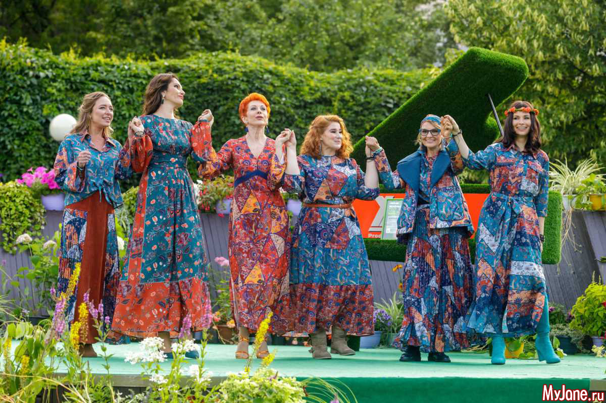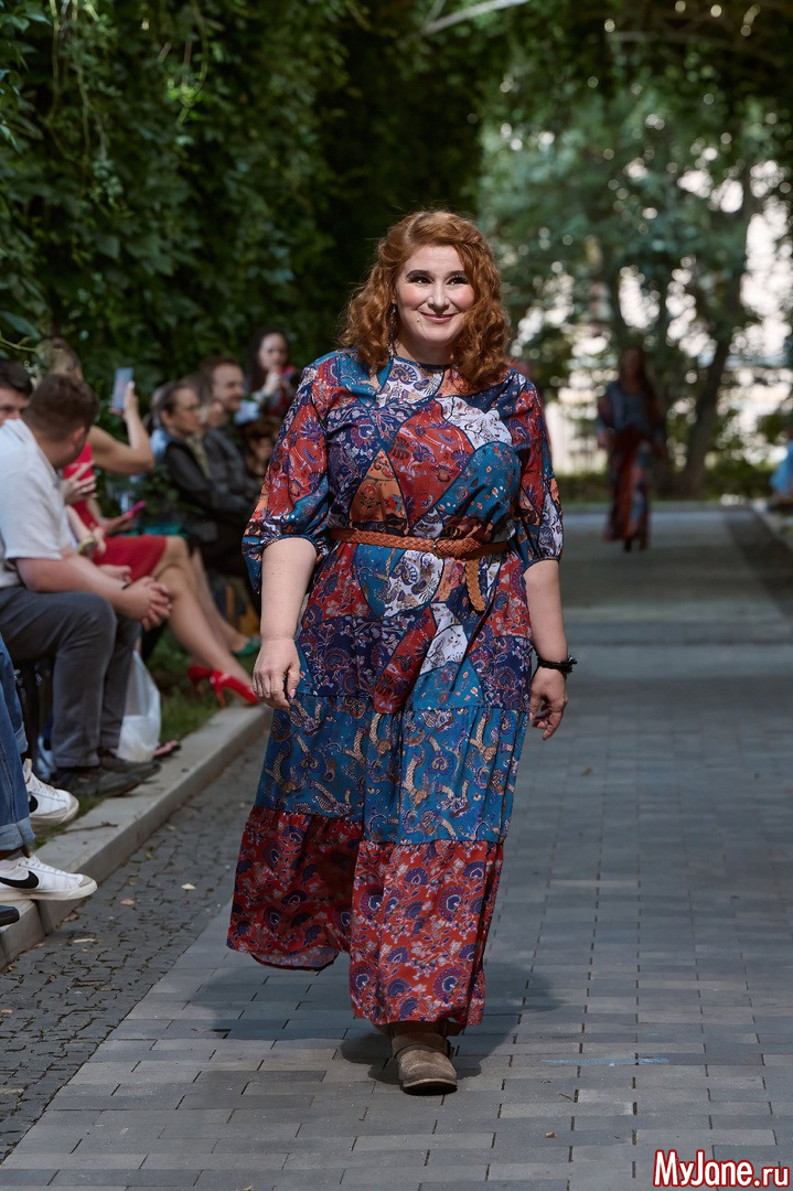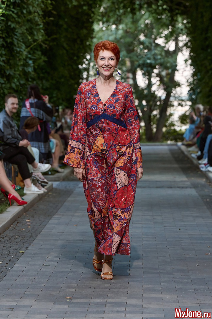 Колоритная Юлия Куварзина восхитила публику элегантным самобытным образом в модели «Купавна -2. Пэчворк». Стильная благородная Нина Шацкая в платье «Ампир. Восточные цветы» добавила вечеру пряные восточные мотивы...